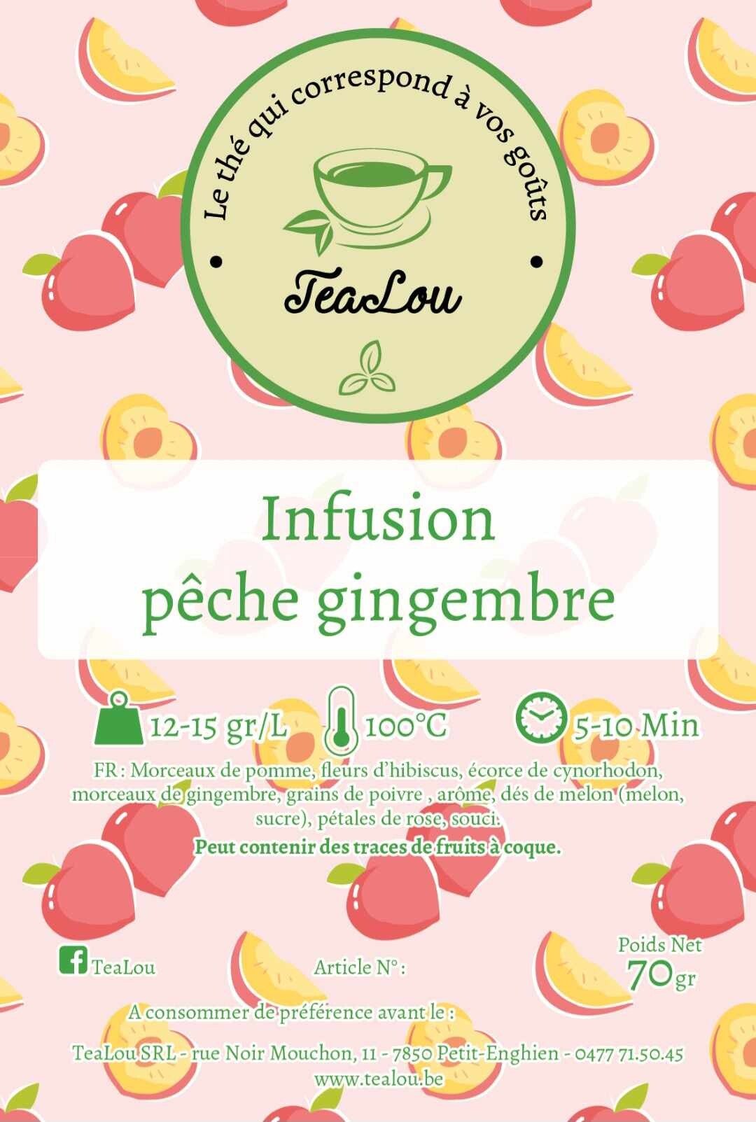 Morceaux de pomme, fleurs d’hibiscus, écorce de cynorhodon, morceaux de gingembre, grains de poivre, arôme, dés de melon (melon, sucre), pétales de rose, souci.